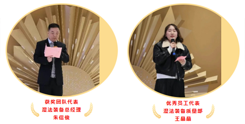 頒獎結束后,中勝微濕法裝備產品部總經理朱信俊作為獲獎團隊代表、濕法裝備質量部王晶晶作為優秀員工代表分別上臺發表獲獎感言,他們分享了自己的成長故事和工作心得,從能力提升到追求卓越,從市場行情分析到團隊齊心協助,他們的精彩分享展現了孚爾姆&中勝微人勇于探索、不斷超越的精神風貌。他們言語間流露出對工作的熱愛、對團隊的感激以及對未來的憧憬,激勵著每一位孚爾姆&中勝微人繼續前行。